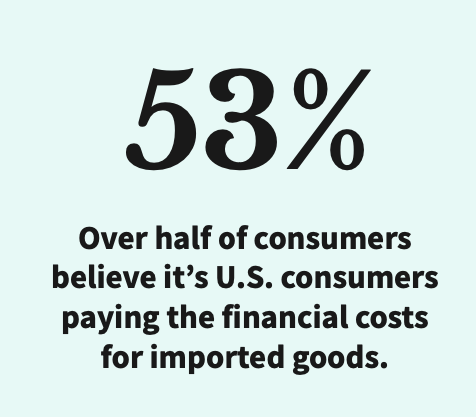 - 53% of those surveyed said U.S. consumers are paying the financial costs for imported goods.