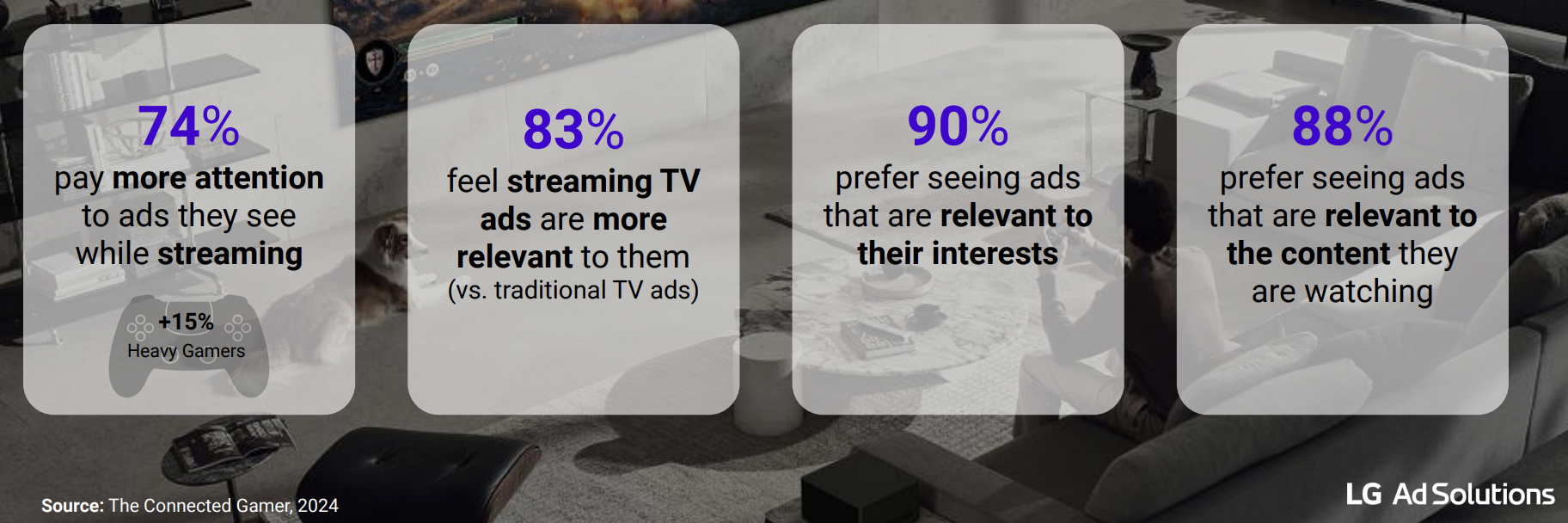 - LG Ads found that 74% of games pay more attention to ads when they're streaming – and for heavy gamers, that figure is 15% higher.