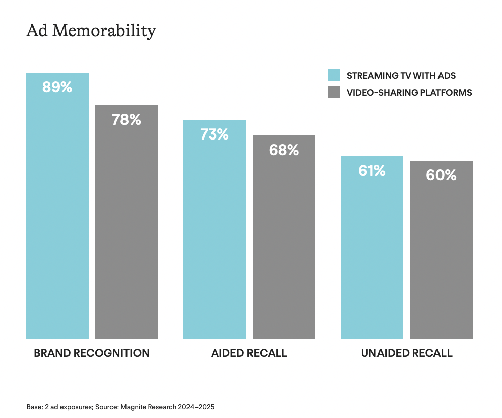 Ad-Supported Streaming Spurs Stronger Recall Than Video-Sharing Platforms