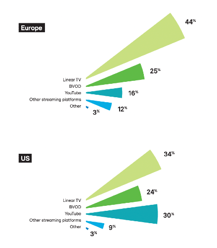 As U.S. TV audiences appear to be drifting away from traditional TV viewing (and where they watch), Europe is still hanging on. RTD Alliance research notes that 44% of Europeans would pick linear TV first, while 83% are still watching in their living rooms. [READ MORE]
