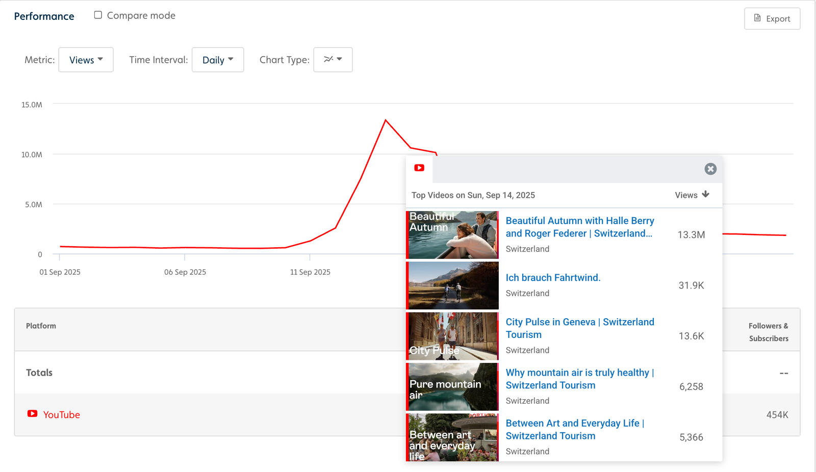Switzerland tourism saw unique viewers and watch-time explode in September, thanks in large part to new celebrity partnerships. Tubular Labs data shows that videos with Halle Berry and Roger Federer helped spur nearly 400% more views month-over-month. [READ MORE]