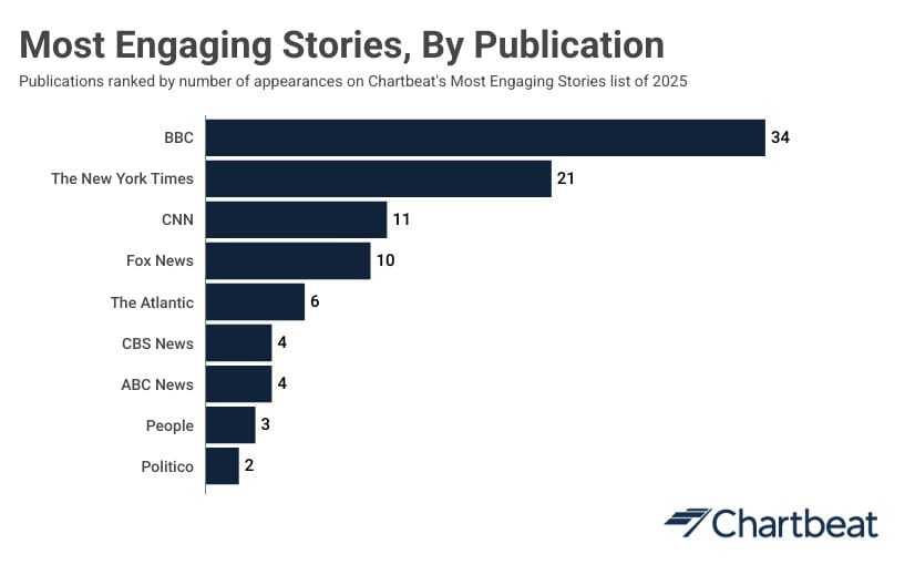 The most engaging stories of 2025 were some of what you'd expect – and plenty that you may not. But one of the bigger takeaways from Chartbeat's annual list of top stories is that certain publishers intrinsically understood how to both tell dynamic stories that readers were glued to, and find ways to make them succeed within today's evolving discovery environment.