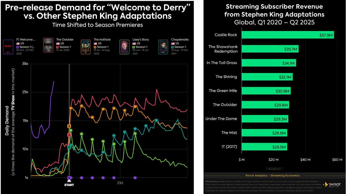 According to Parrot Analytics, the pre-release U.S. audience demand for Welcome to Derry is higher than any other recent TV show adapted from a King work.