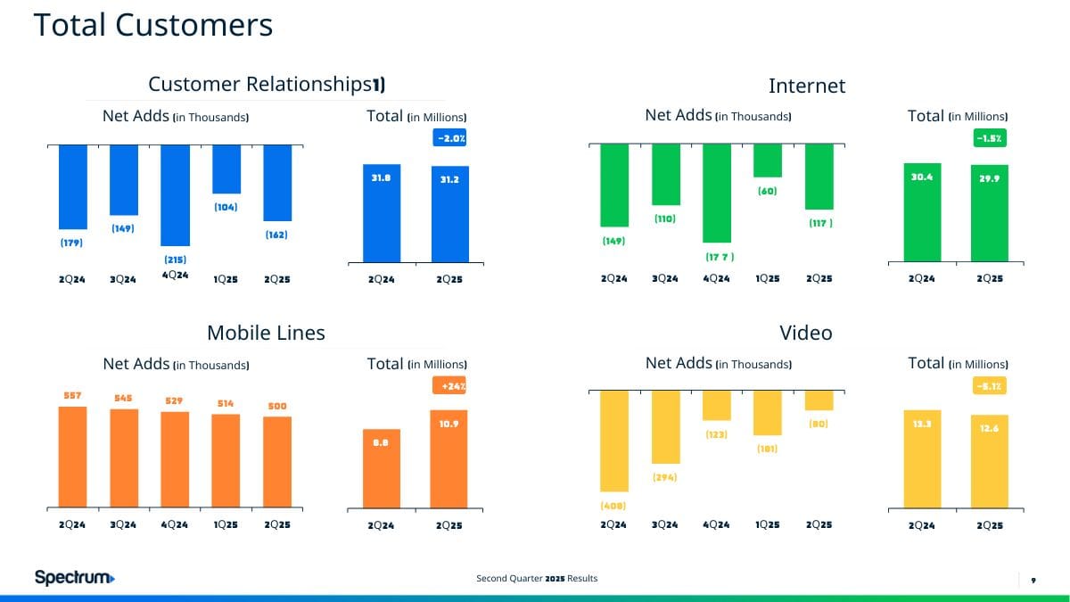 Charter lost 80,000 video customers in the quarter, a drop in the proverbial bucket compared to the 408,000 that cut the cord in 2Q 2024. 2Q was the best video partner for Charter since 2021. Charter now counts 12.6 million video subscribers. Winfrey maintains that the video business remains important to Charter.