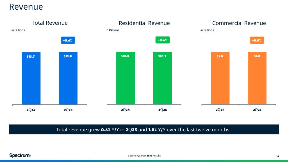 How good a business is it financially? Well in the second quarter, , Charter generated $13.8 billion in revenue, up 0.6% from a year ago. Of that, nearly $6 billion came from broadband, while $3.5 billion came from video. Mobile services accounted for $921 million in revenue.