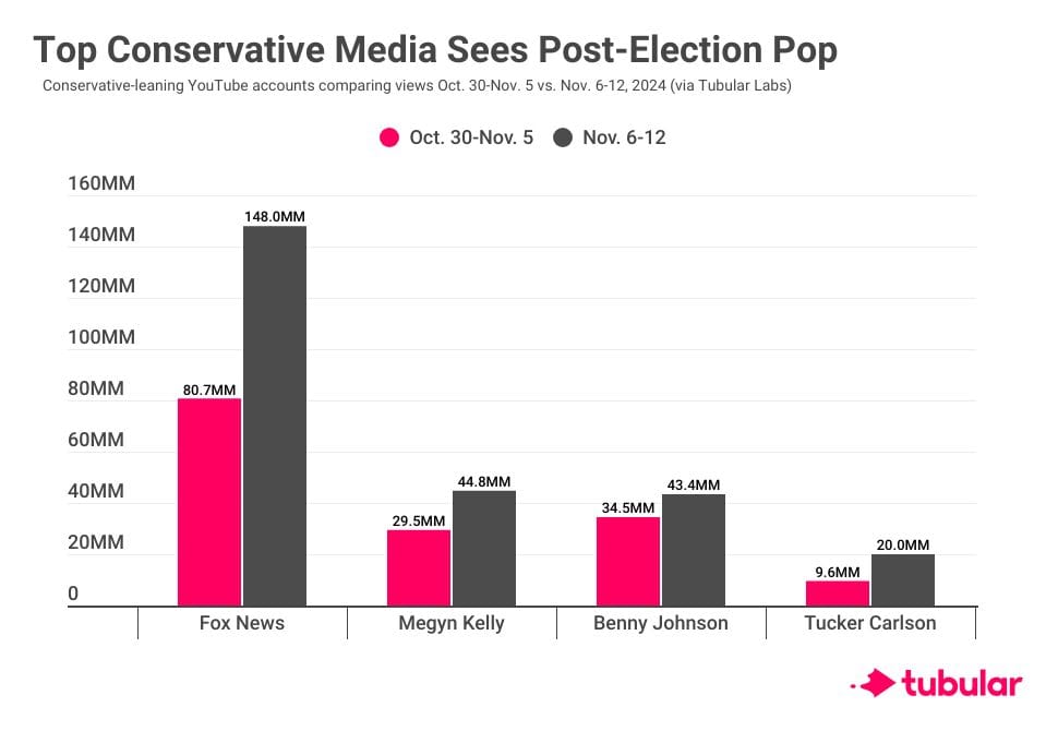 While conservative-leaning media finds plenty of success on social video as it is, Donald Trump's Election Night victory helped bring an even bigger viewership boost – as new data from Tubular Labs shows this week.