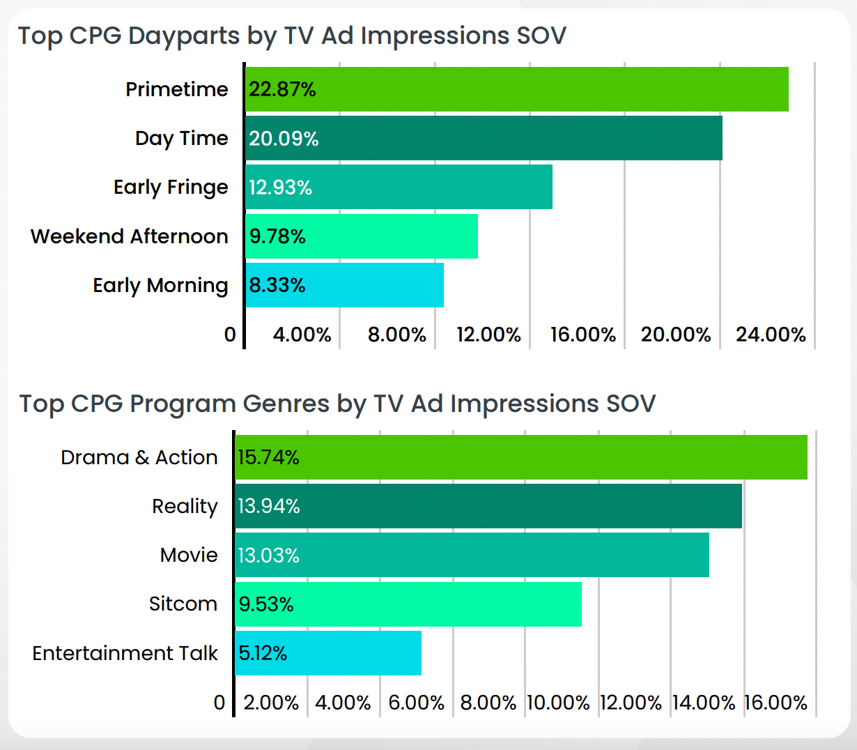- Drama & action shows accounted for nearly 16% of CPG TV ad impressions in Q3, delivering 8.6% more ad impressions YoY for CPG brands.