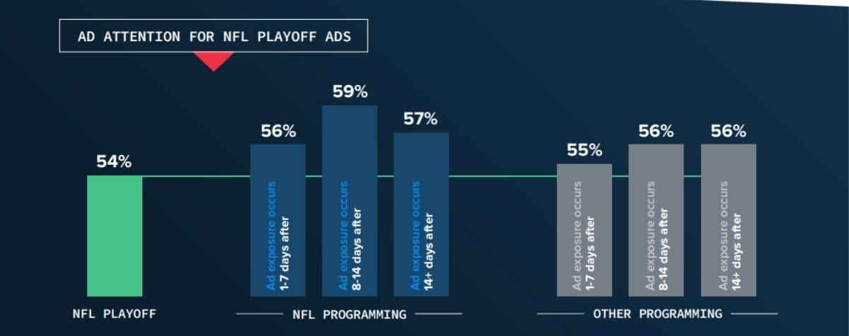 NFL Playoff ads aren’t just getting more attention in-game. New data from TVision shows that spots originally airing during these postseason games also receive more attention on subsequent – non-NFL – viewings. [READ MORE]