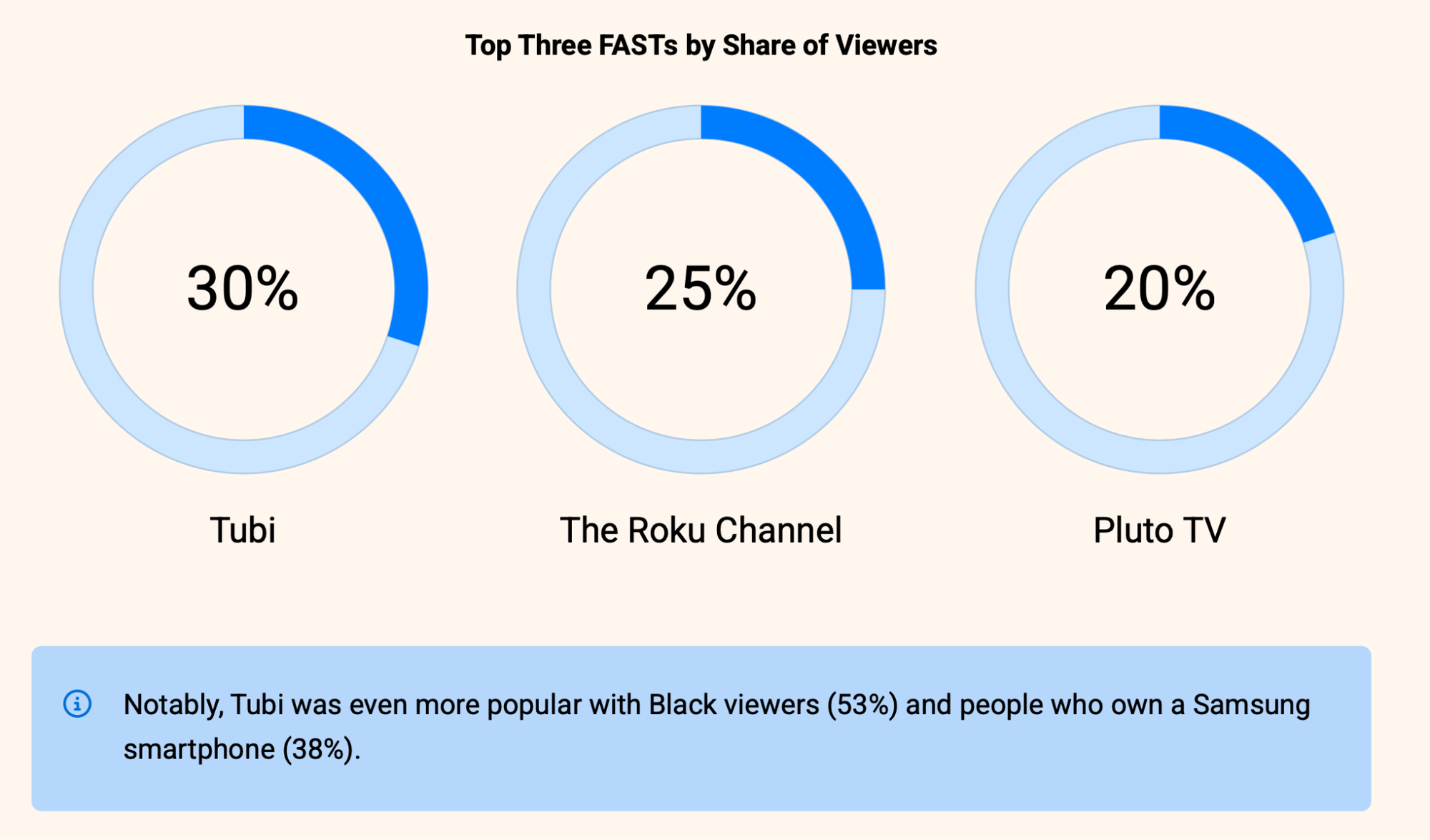 - Tubi is even more popular with Black viewers (53%) and people who own a Samsung smartphone (38%).