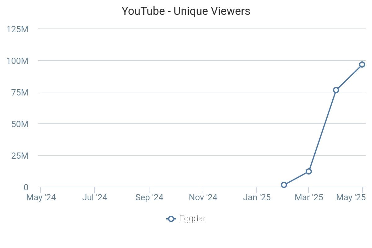- Data from Tubular Labs shows that Eggdar grew to 96.6 million unique U.S. viewers on YouTube in May 2025; all on the strength of short movie memes repeatedly displayed on top of the same face.