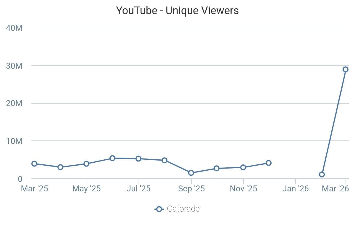 Gatorade also generated an over 5x increase in views from February to March. With more and more audiences increasingly gravitating towards women’s sports, Gatorade is tapping into that momentum in a way that drives reach.