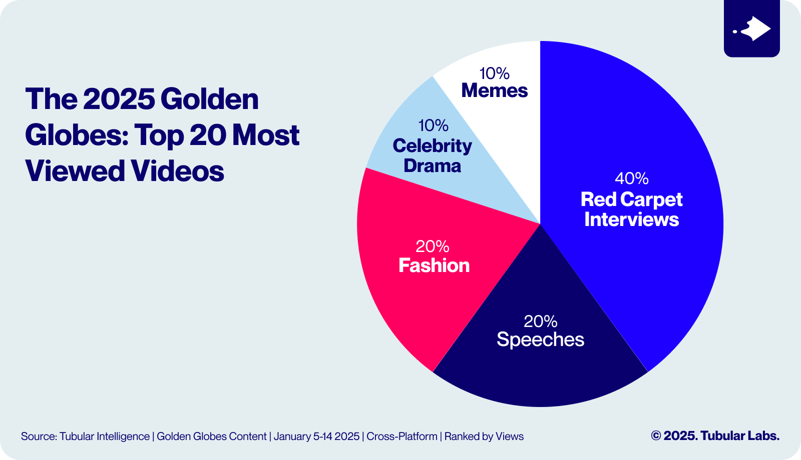 - Red carpet interviews accounted for 40% of the most-viewed Golden Globes videos on TikTok, and notably, many of those interviews were actually handled by creators, rather than traditional media hosts.