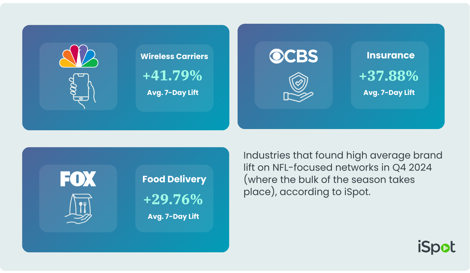 iSpot's new report around NFL advertising spotlights how the league – which accounts for a significant portion of TV ad impressions during the season – helped broadcast partners deliver outcomes for specific industries in Q4.