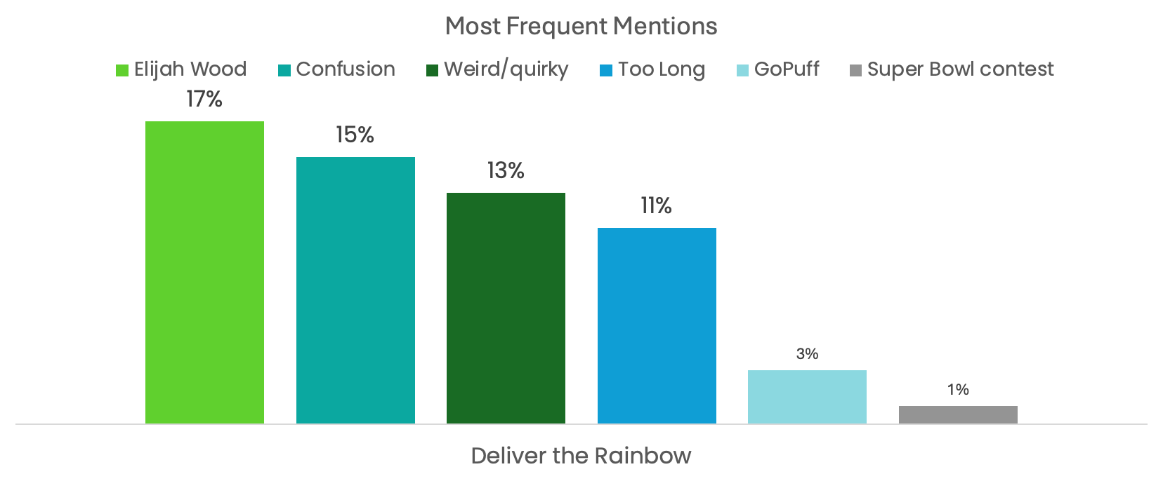 By partnering with Gopuff, Skittles is leaning into the behavioral reality of the Super Bowl as a delivery-and-snacks holiday. iSpot’s assessment of the long-form "Deliver the Rainbow" teaser confirms that while the content is polarizing, it is a powerful driver of brand identity. For the core audience, the creative didn't just grab attention; it reinforced the "pleasantly perplexing" voice that makes Skittles a leader in the chewy candy category.