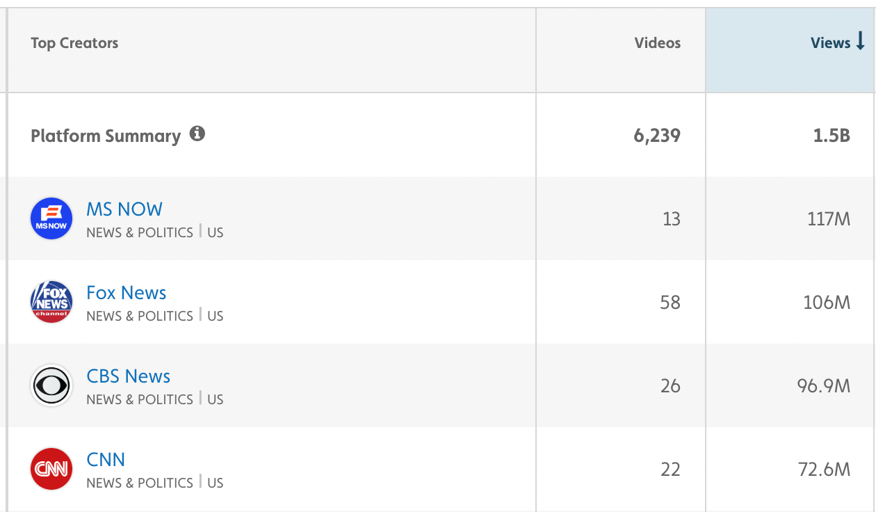 - The data also shows that across all platforms, 48 of the 50 most-seen videos on the topic were published either the night of the event or early on April 26.