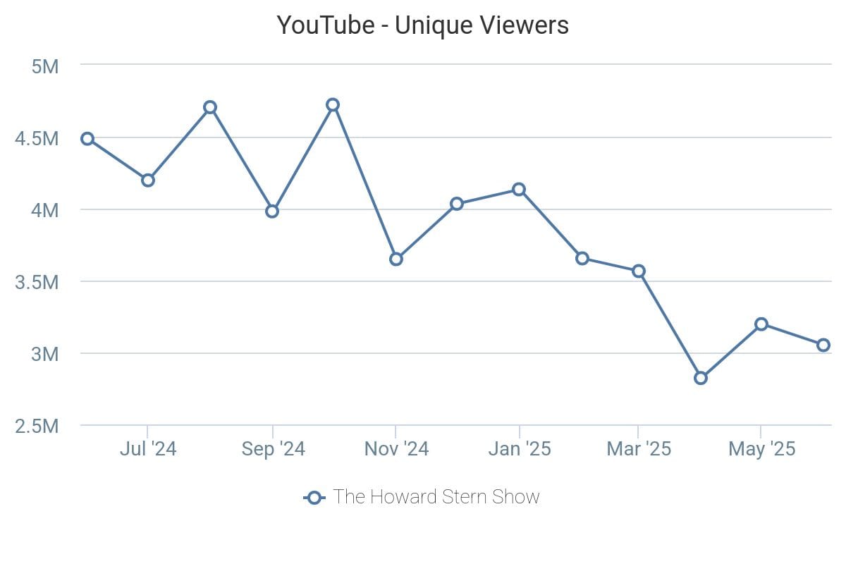 - Since last June, unique U.S. viewers for Stern’s YouTube page have declined 31%, from 4.5 million to 3.1 million, and it was No. 96 in June by U.S. audience reach among domestic entertainment, film & movie media pages.