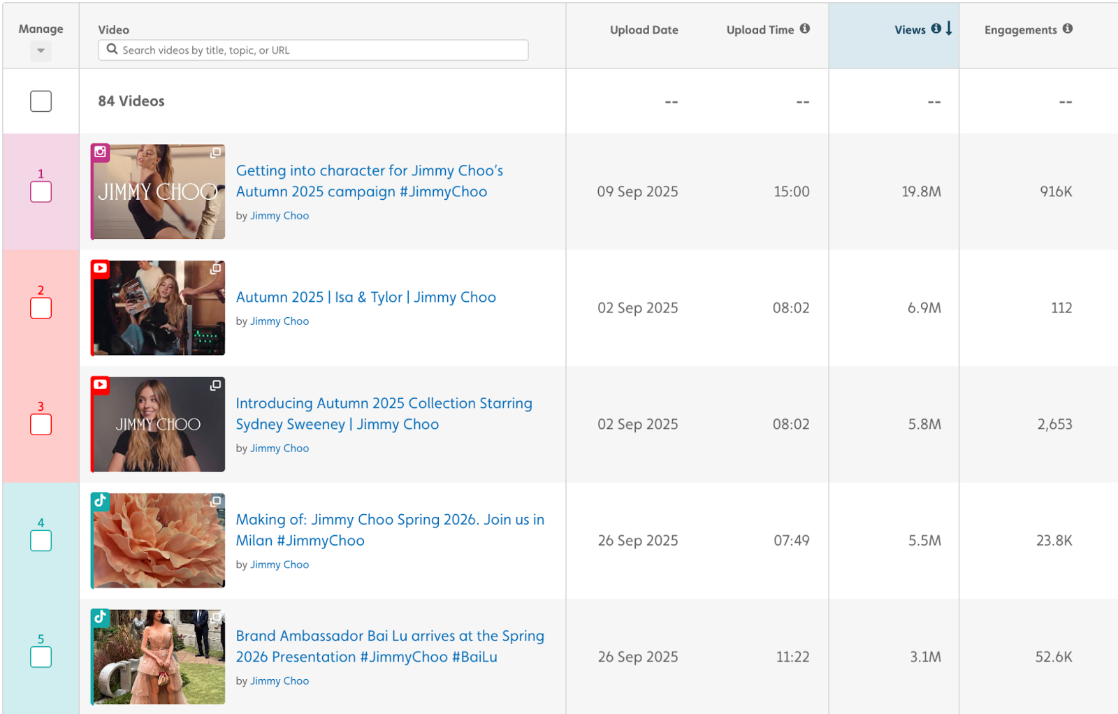 The Instagram post on Sept. 9, “Getting into character for Jimmy Choo’s Autumn 2025 campaign #JimmyChoo” featuring Sweeney soon became a viral sensation, with 10.3M views on Sept. 10 and 19.8M views. Since then, viewership and engagement has risen significantly for Jimmy Choo accounts across social platforms.