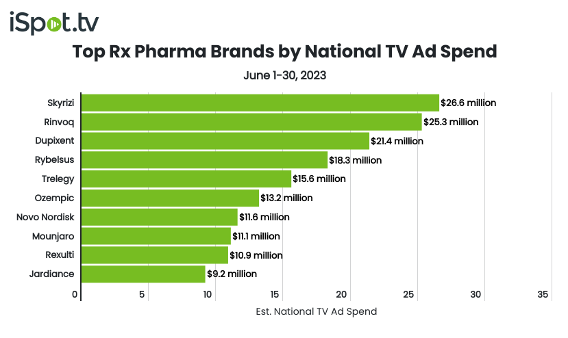 - Rinvoq, which was the No. 1 brand by May spend, drops to No. 2 with $25.3 million.