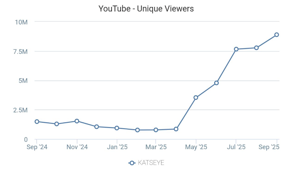 - The group reached an audience of 8.9 million female viewers during the month, which was up 14% compared to August, and 10x since April.
