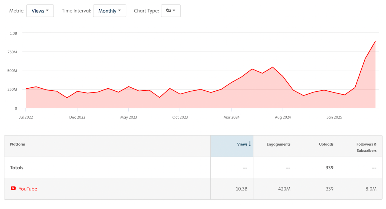 In May 2025, The Land of Boggs was the No. 11 media & entertainment channel on YouTube by unique U.S. viewers, finishing just ahead of better-known creators like Fox News, ABC News, Sesame Street and CNN.