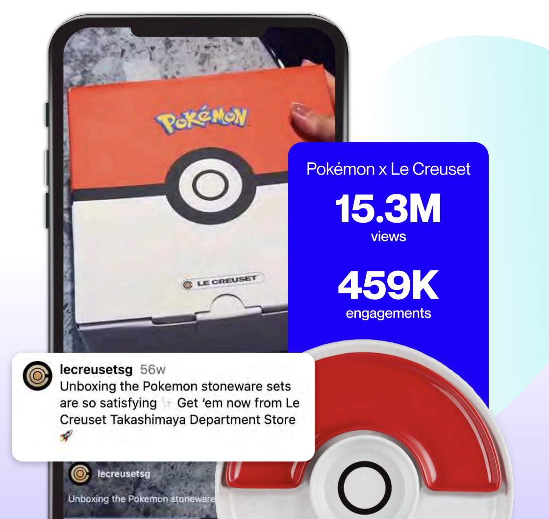 - Le Creuset's Singapore Instagram page unboxed a new Pokémon-themed cookware collection, and quickly caught 15.3M views and 459K engagements – which were 139x and 216x their typical averages, respectively.