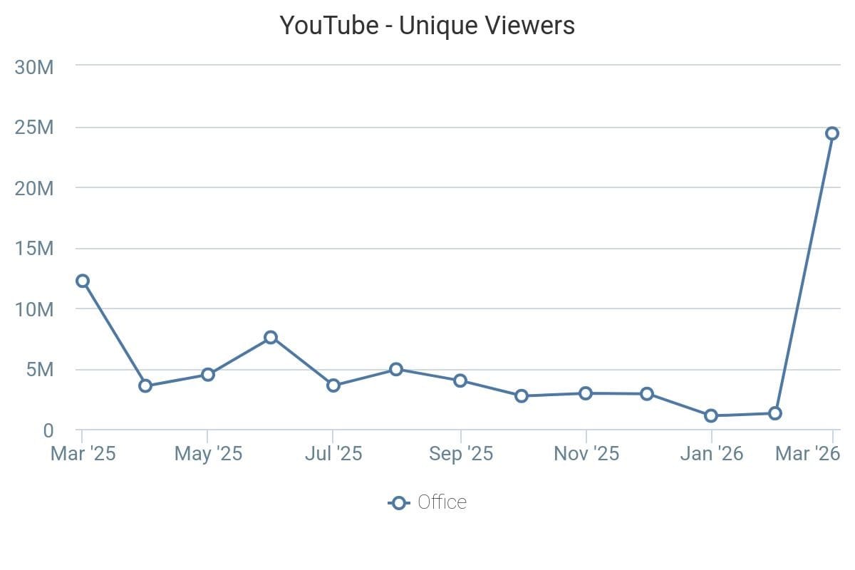 The ad “Hank knows pizza. Copilot knows Excel.” has driven YouTube viewership and engagement for Microsoft Office significantly, with a 1,795% increase in unique viewers and a 1,435% increase in minutes watched in March year-over-year, according to data from Tubular Labs. Viewers are sticking around for AI-centered content, driving not just curiosity clicks but an impressive 1,868% lift in 30s views.