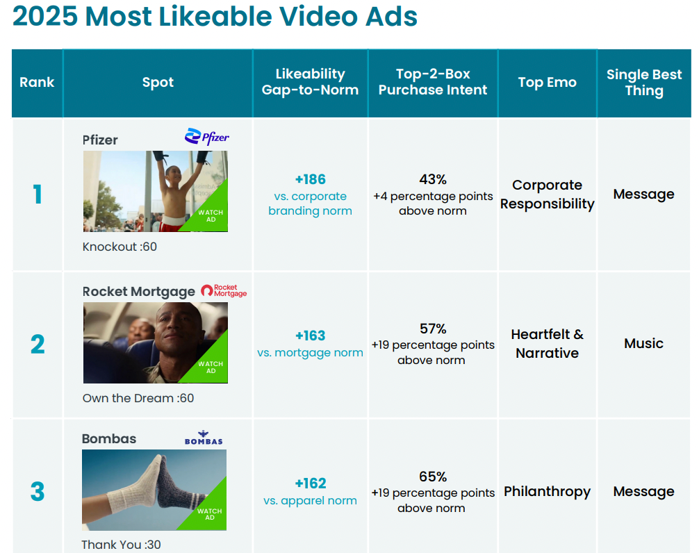 iSpot’s new report highlights the year’s most likeable ads, and perhaps it’s no surprise that the Super Bowl’s top spot – Pfizer’s “Knockout” – notches yet another win. Despite a Big Game full of laughs, Pfizer’s ad stood out with a strong message, while pulling at heartstrings. [READ MORE]