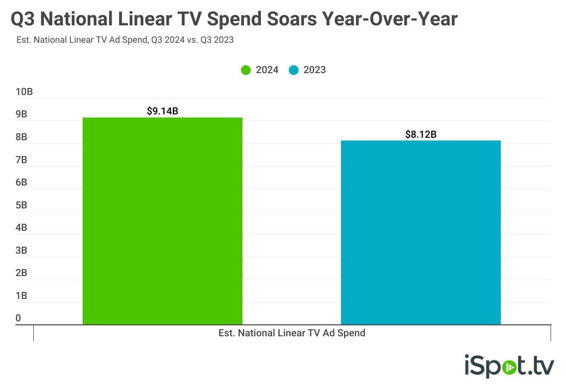 National Linear TV Ad Spend Spikes 12.52% In Q3 YoY