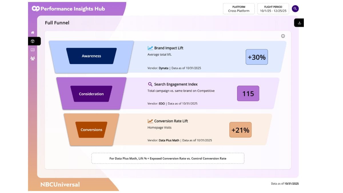 The Performance Insights Hub will be available after the 2026 upfront in the fourth quarter. It is designed to give advertisers all sorts of real-time data about how campaigns are delivering impressions and generating reach, which shows consumers are responding to as they move from awareness to purchase.