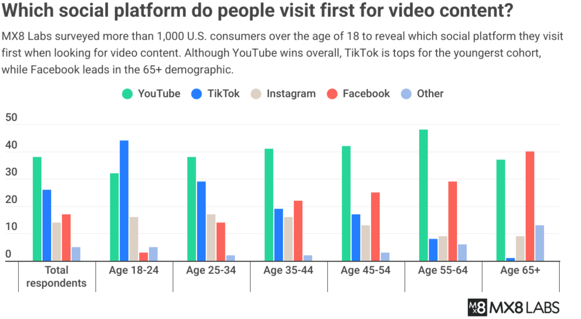 - 44% of people ages 18-24 say they go to TikTok first for video content