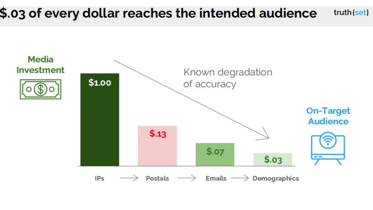 As a result, for every dollar spent on campaigns using IP-based targeting, just three cents worth reaches the intended audience.