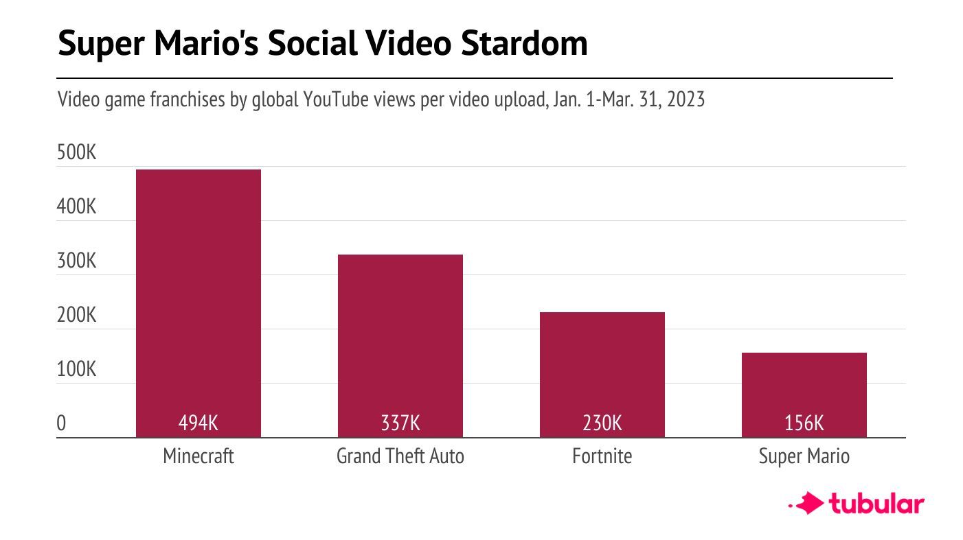 - The Super Mario franchise generated 84% more views year-over-year in Q1, which is at least partially credited to anticipation for the April 2023 Super Mario Bros. movie release.