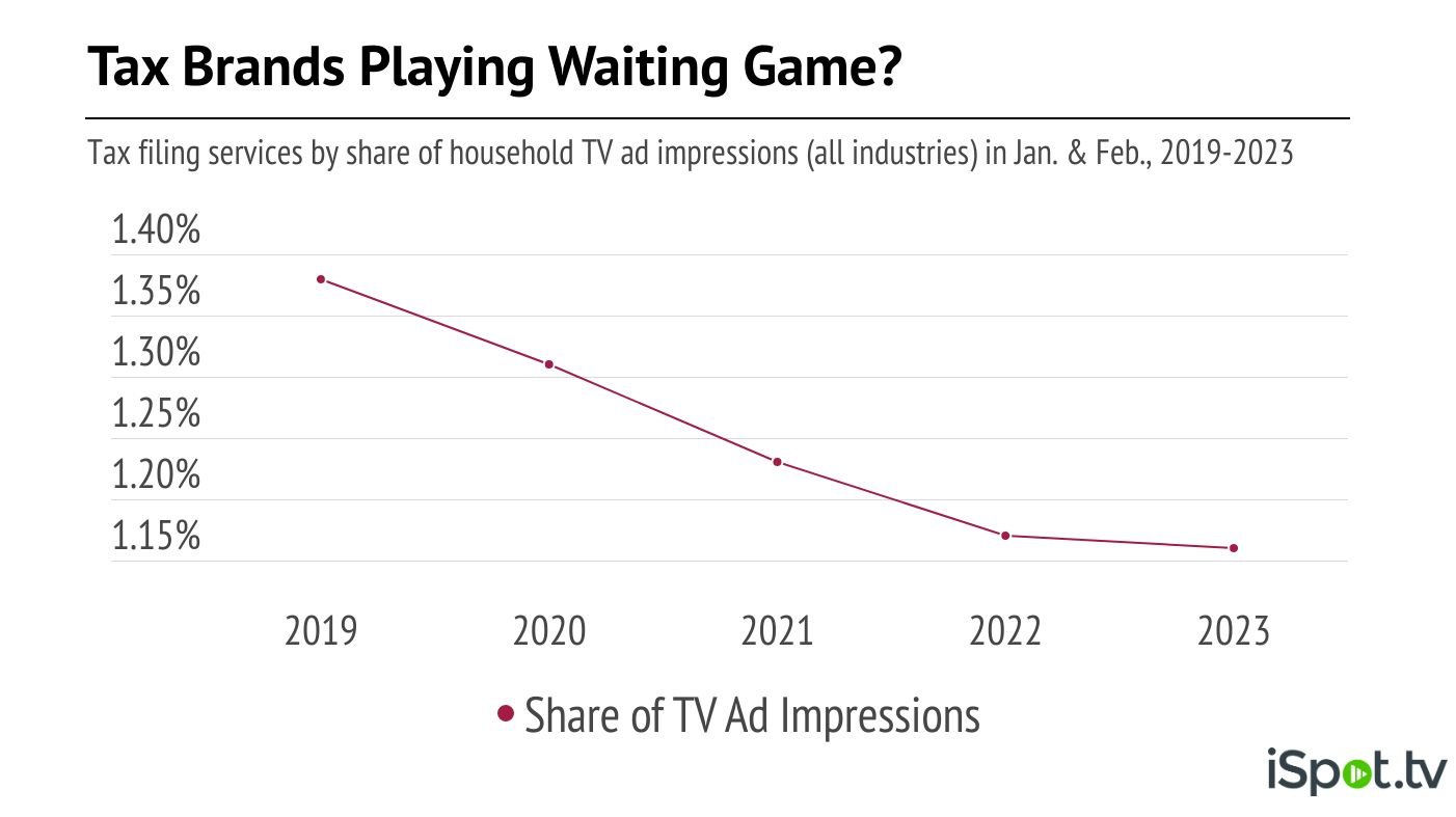 - The NFL delivered 11.5% of tax filing service brands’ TV ad impressions in the first two months of 2022, compared to 8.6% in 2023.