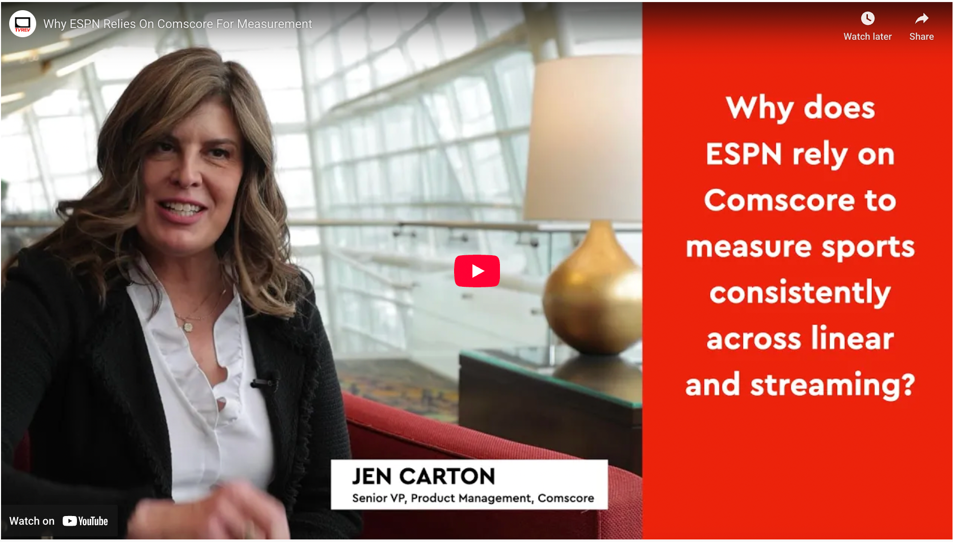 Hear from Comscore VP of Product Management Jen Carton about how the company works with ESPN to keep measurement consistency whether audiences are watching sports on linear or streaming TV. [WATCH MORE]
