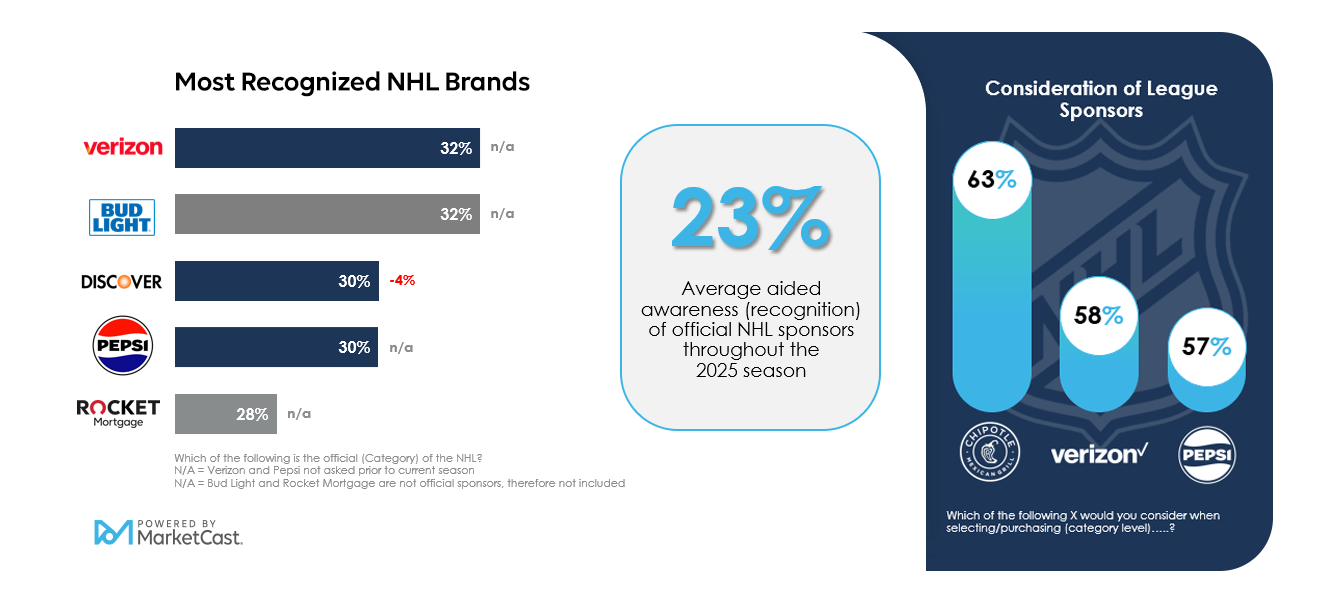 - Official sponsors of the NHL averaged 23% aided awareness throughout the 2024-2025 season.