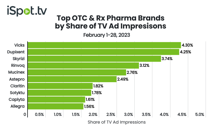 With a 4.30% impressions share of voice, Vicks was the most-seen OTC or Rx brand on TV in February.