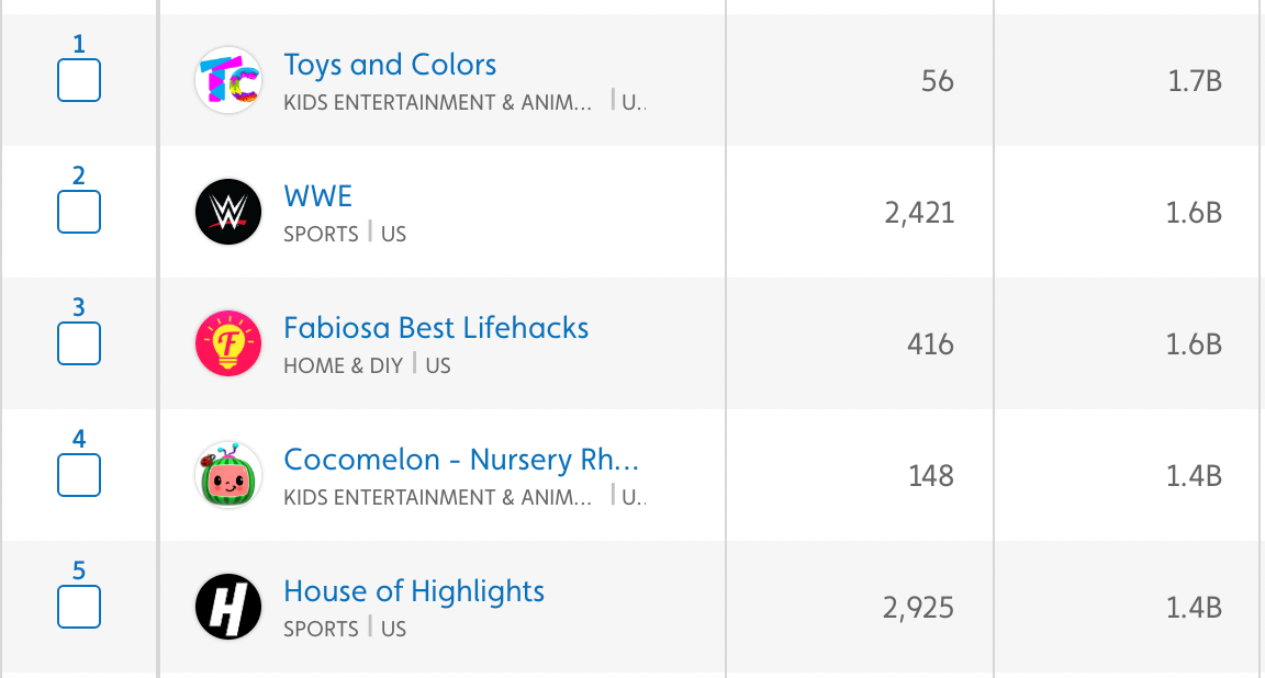 - Kids creator Toys and Colors received significant bang for their buck, so to speak, with 1.7 billion views on just 56 new Shorts uploads so far this year, to lead the way.